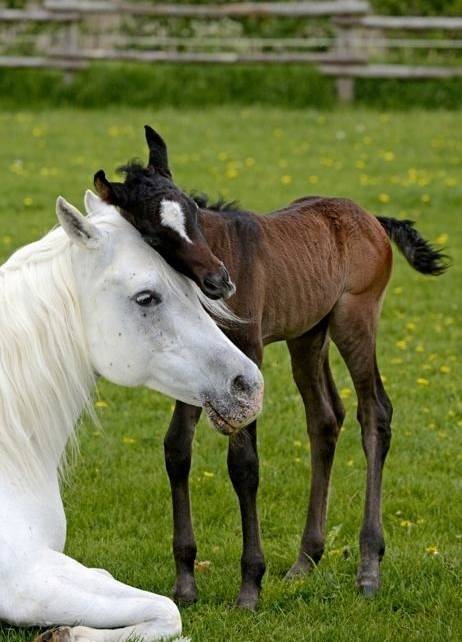 稚嫩的小马偎依在妈妈的身边,温情满满~