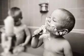 不甘心的我又跟到卫生间,看见舅舅正在用那个小小的东西一下下刮着满脸的白色的泡泡。我一看就乐了,哈,原来这么好玩啊。于是,我就想着,等下我也试试,这满脸的泡泡多好玩啊。
