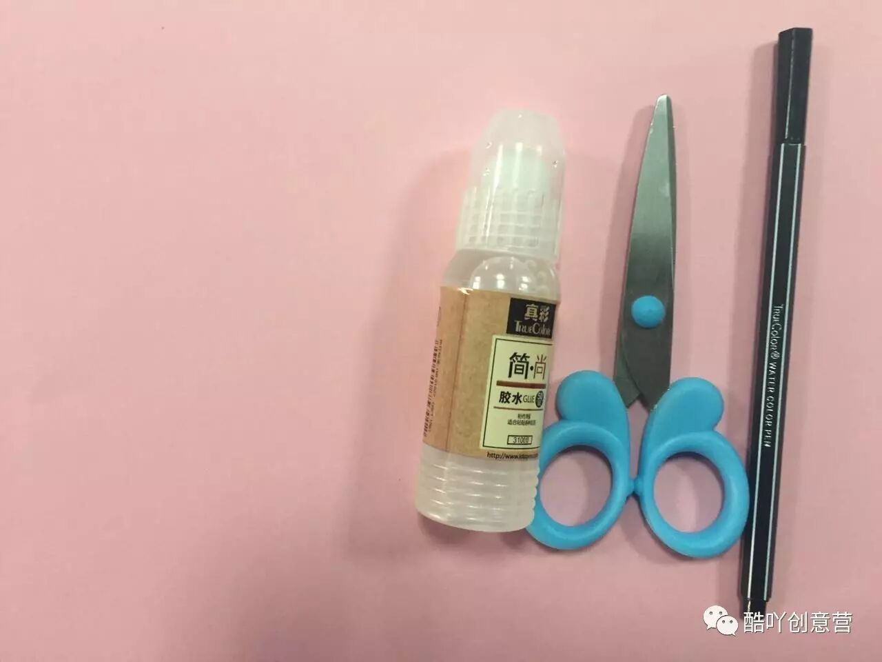 需要材料:卡纸+剪刀+黑色水彩笔+胶水